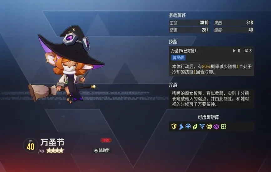 萬圣節(jié)的效果是:行動后有80%的概率減少一回合技能的冷卻時間,在長線副本中非常的實用~