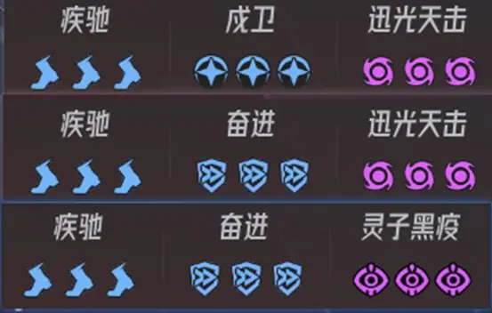 矩陣方面選擇 疾馳+戍衛(wèi)+迅光天擊(疾影強襲)配合梨梨等進行先手壓制是不錯的選擇